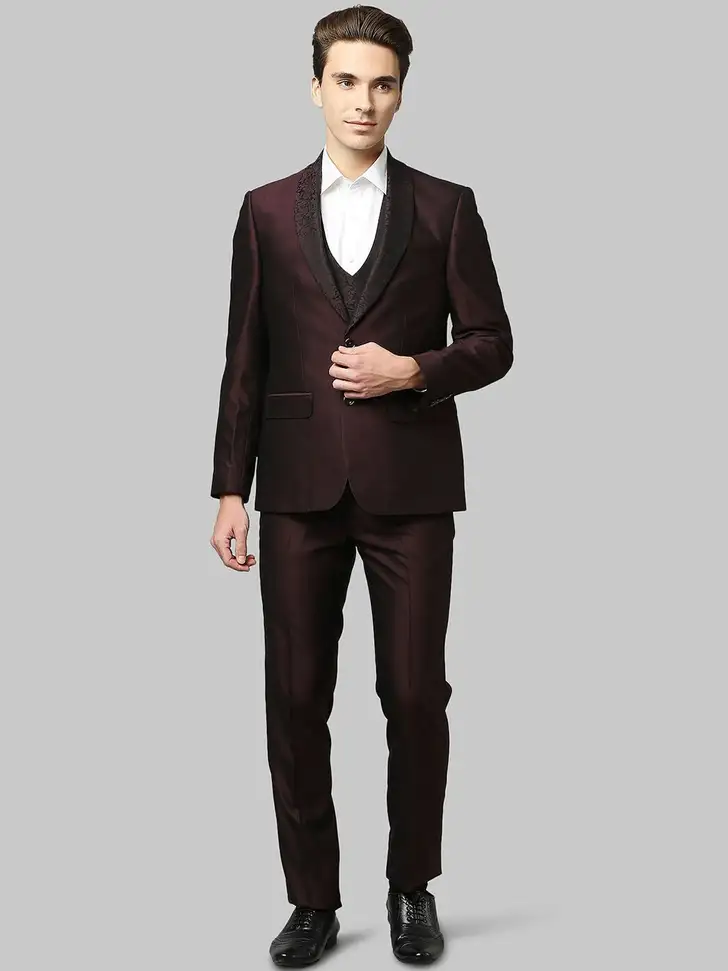 Elevate your formal wardrobe with the Raymond 3PC Single-Breasted 2-Button Solid Suit, designed with a sleek Contemporary Fit for a modern, tailored look. The highlight of this ensemble is the elegant shawl collar, delivering a touch of luxury and refined charm. Crafted from premium fabric, this 3-piece set includes a well-structured blazer, matching trousers, and a coordinated waistcoat for a complete, polished appearance. Ideal for weddings, high-profile events, and sophisticated celebrations, this Raymond suit exemplifies timeless style and impeccable craftsmanship.