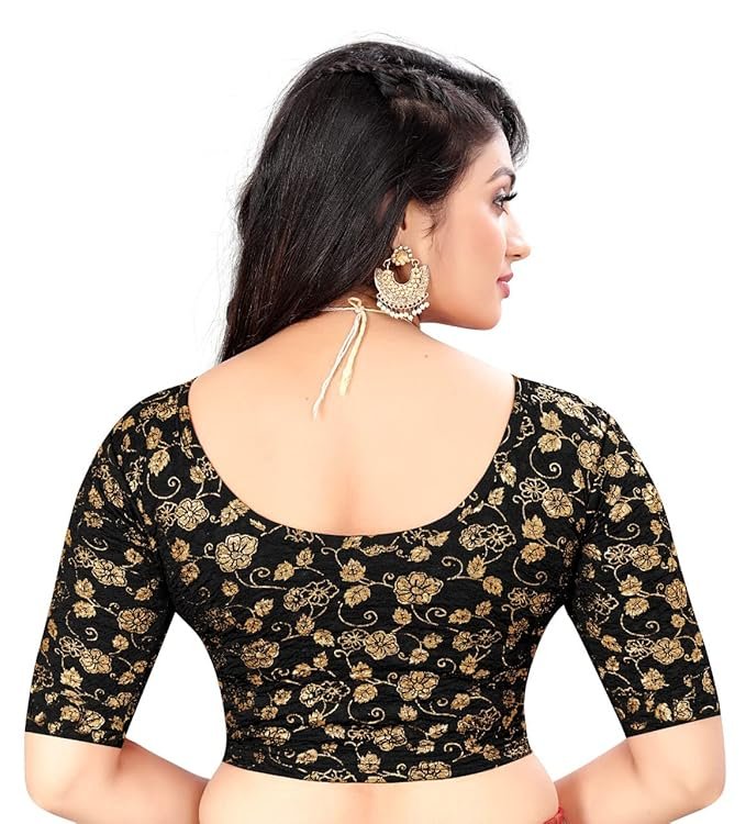 This stylish women's blouse features a classic round neck design that offers a timeless and flattering silhouette. Adorned with an elegant golden floral pattern, the blouse adds a touch of sophistication and charm, making it perfect for both casual outings and special occasions. The unique dubbel print enhances its visual appeal, creating a layered and textured look that stands out beautifully. Crafted with comfort in mind, the blouse comes with half sleeves, making it ideal for warmer weather or for layering under jackets and cardigans. Whether paired with jeans, skirts, or trousers, this versatile piece is sure to become a favorite in any wardrobe.
