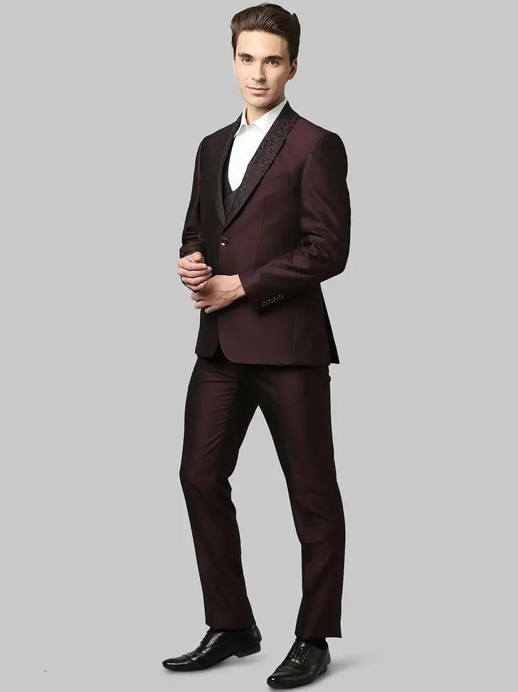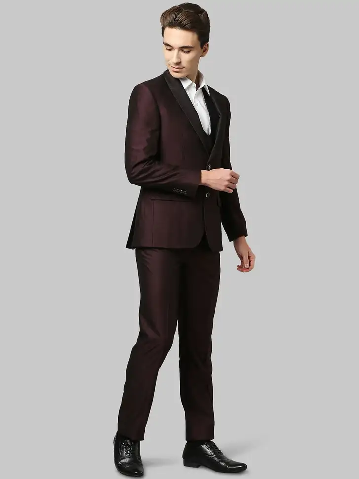 Elevate your formal wardrobe with the Raymond 3PC Single-Breasted 2-Button Solid Suit, designed with a sleek Contemporary Fit for a modern, tailored look. The highlight of this ensemble is the elegant shawl collar, delivering a touch of luxury and refined charm. Crafted from premium fabric, this 3-piece set includes a well-structured blazer, matching trousers, and a coordinated waistcoat for a complete, polished appearance. Ideal for weddings, high-profile events, and sophisticated celebrations, this Raymond suit exemplifies timeless style and impeccable craftsmanship.